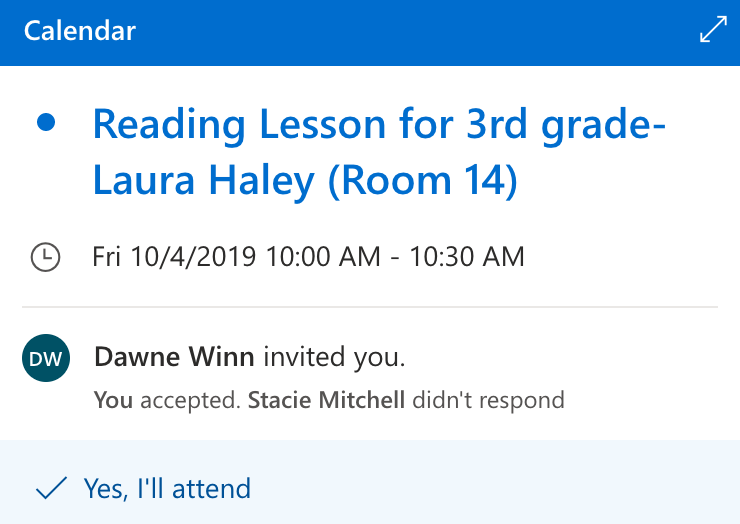 person interview transferred over into the classroom. Attached to this description is the calendar invite from my principal for this observation. This observation accounted for 1 hour of my internship.